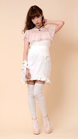 Not to be confused with lolita fashion, this sub style of larme draws inspiration from vintage children's toys, and Nabokov's book "Lolita". Fabrics are often Silk, knits and satin. Colours are usually black, pink and red, and the style can go either looking dark and melancholic or stay sweet. Tops are often cropped and go off-shoulder, and socks are over the knees.